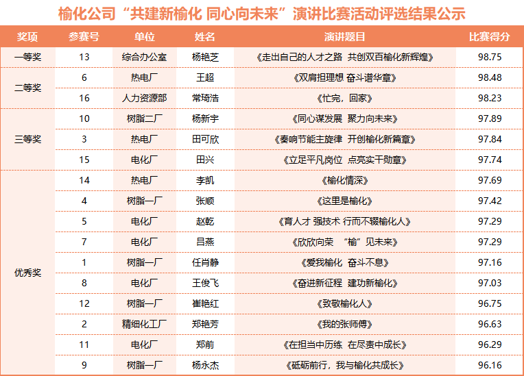 公司成功举办“共建新榆化 同心向未来”主题演讲比赛活动