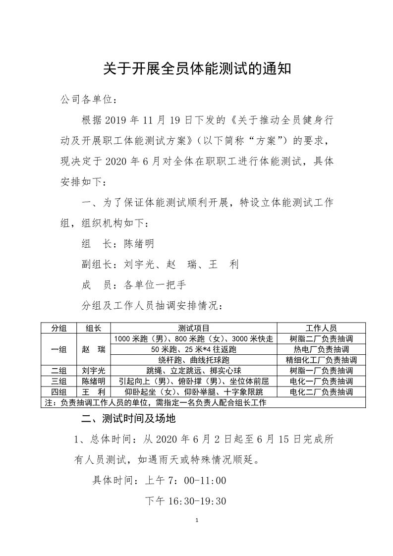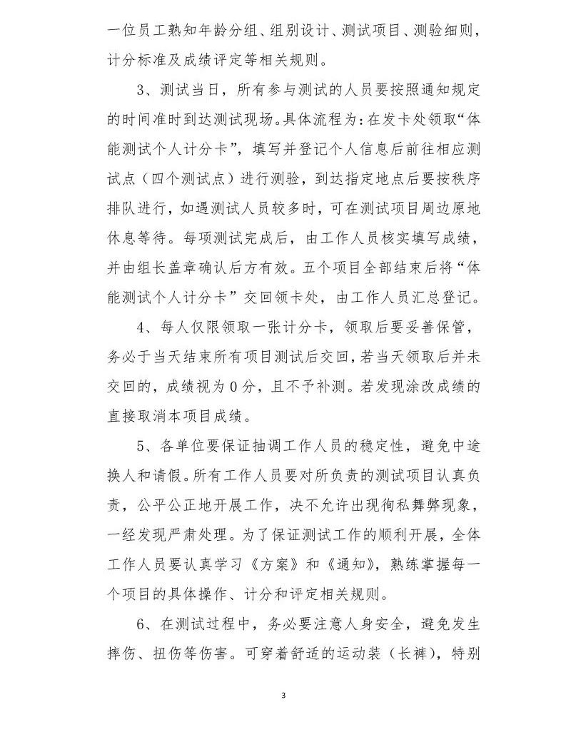 关于开展全员体能测试的通知