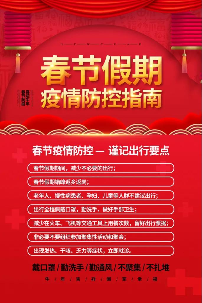 春节假期在今年这特殊的疫情影响下,政府提倡一切从简,外出的人们选择就地过年,不建议返乡,在家乡的人们提倡微信拜年,电话拜年,减少聚集走访!