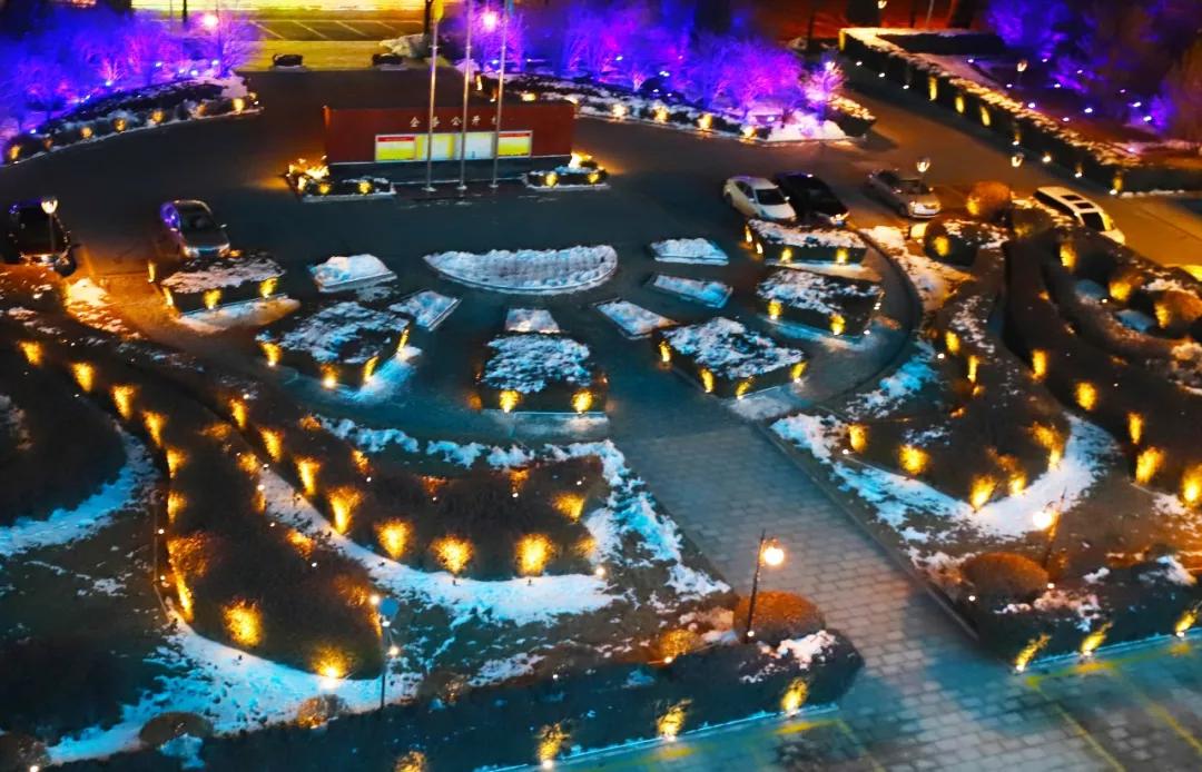 傍晚时分,夕阳下沉,天空从浅蓝变成墨蓝,这时候,公司的花灯也亮了起来,年味儿就这样悄无声息地,钻进榆化人的眼睛里。平日下班后直接走出公司大门的员工们,在近日总会驻足欣赏这美好夜景。