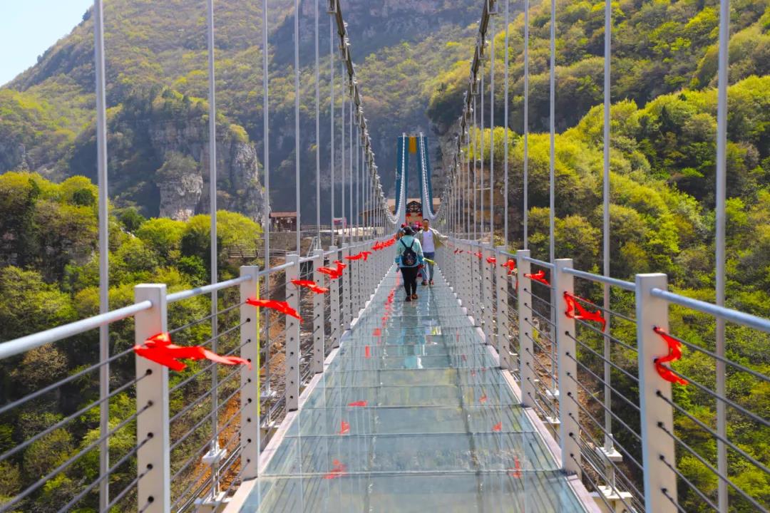 云丘山鸳鸯玻璃栈道,远远望去宛若一道晶莹剔透的滑冰场。大家伫立桥上观景,云丘山美景尽收眼底,纵横群山之间,恍若人间仙境,走在玻璃桥上如临深渊如履薄冰,有一种别样的感受。