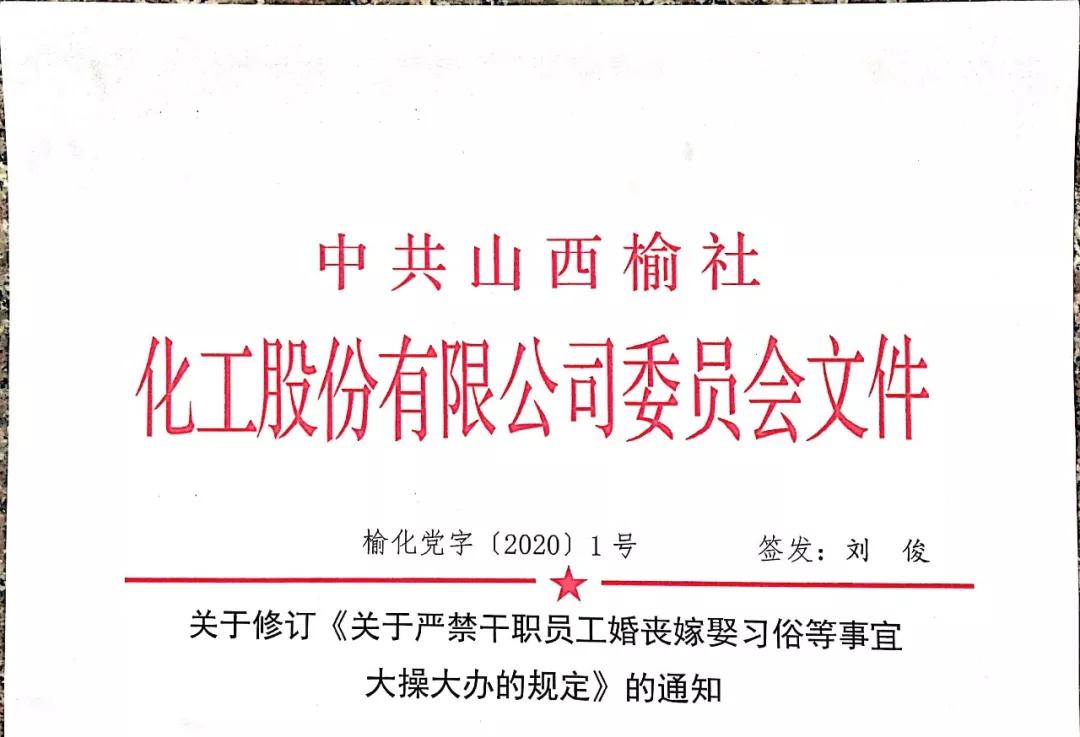 12月25日,公司党委、监事会、工会及人力资源部召开专题会议,对《关于严禁干职员工婚丧嫁娶习俗等事宜大操大办的规定》进行了修订。