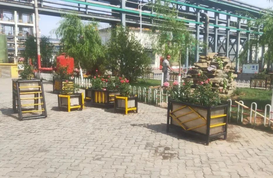 为营造绿色、文明、健康的工作环境,精细化工厂在绿化工作上加大投资力度,并要求全员为推进绿化工作建言献策。精细化工厂对所辖区域内的树木棵数、草坪面积等进行详细统计,逐一登记在册,并具体划分到车间,实行包片负责制;根据绿化树木的类型,特别添加平锯、花剪等器具,方便绿化人员使用;指定专人制作各式各样的花架,种满各色月季。绿化工作任重而道远,精细化工厂将为建设美丽榆化贡献更多力量。