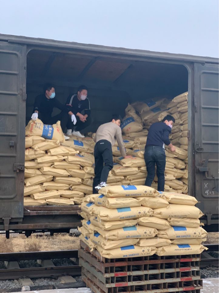 车皮到站,业务员现场清点货物入库,确保公司财产安全。