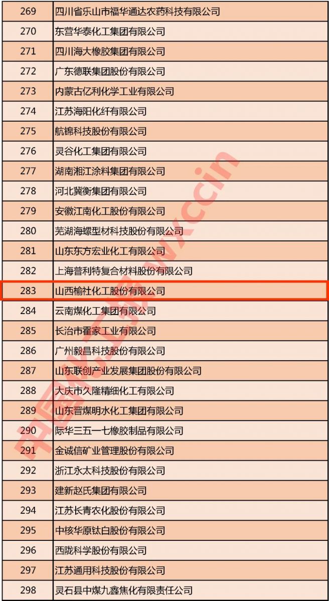 热烈庆贺榆化公司喜获2020中国石油和化工企业500强殊荣
