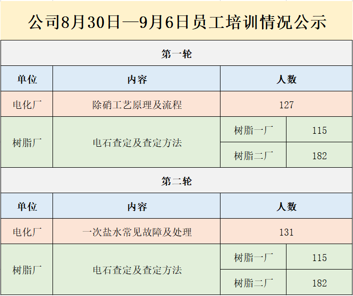公司8月30日—9月6日员工培训情况公示