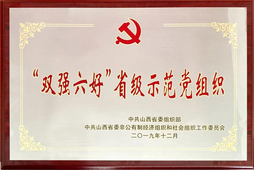 3月31日,中共山西省委非公有制经济组织和社会组织工作委员会向我公司授予“双强六好”省级示范党组织荣誉奖牌。