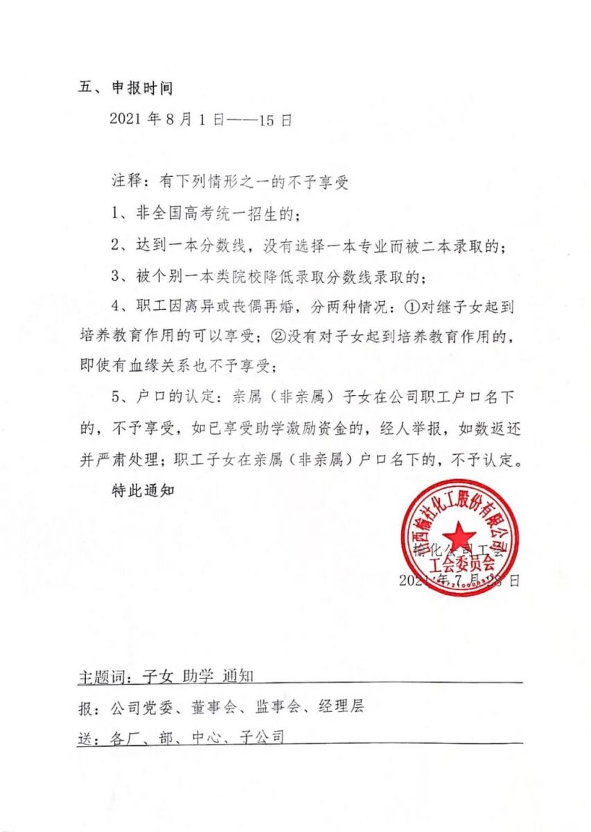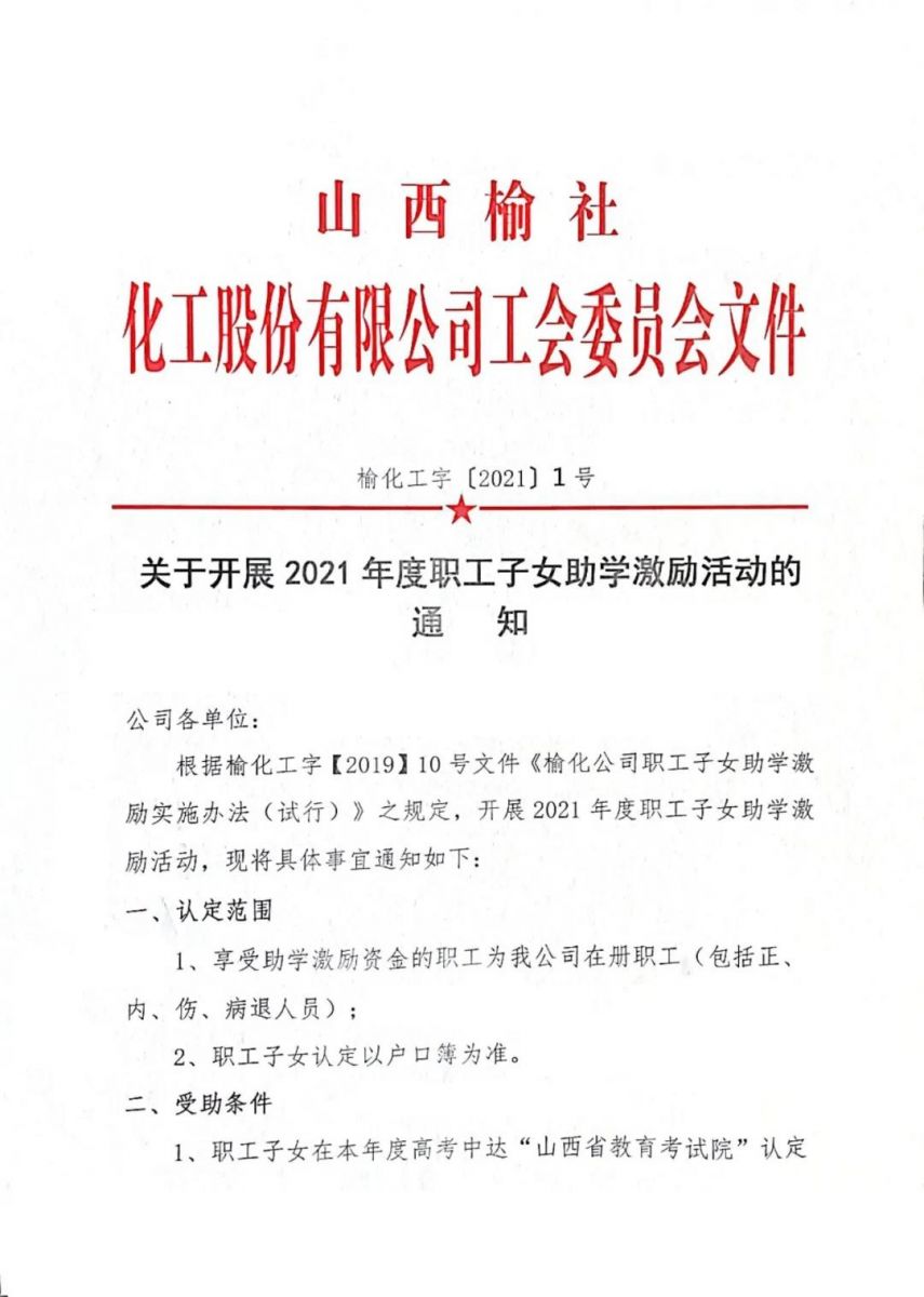 关于开展2021年度职工子女助学激励活动的通知
