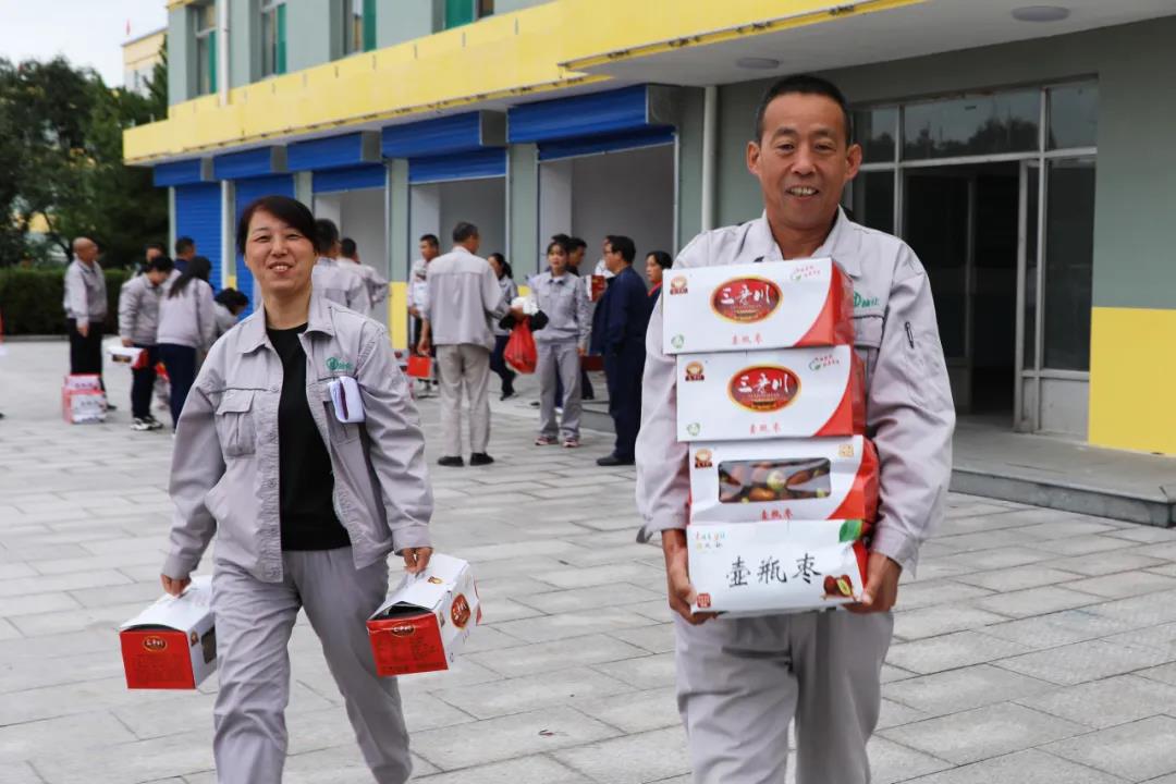 9月25日,月饼的香甜还留在唇齿间,公司就又为全体员工发放了太谷壶瓶脆枣。甜上加甜,甜进心间,让每一位员工再一次感受到作为一名榆化人的幸福与自豪。榆化给员工发放的福利不仅在节日,更在点点滴滴的日常生活里。