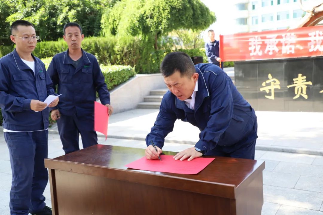 随后,大家在公司领导的带领下,在安全生产承诺书上郑重签名,表明了积极开展安全生产工作的态度和决心,签署责任书是对安全生产的承诺。今后将积极承担安全责任,扎实推进各项安全工作,全力保障各项生产任务的顺利进行。