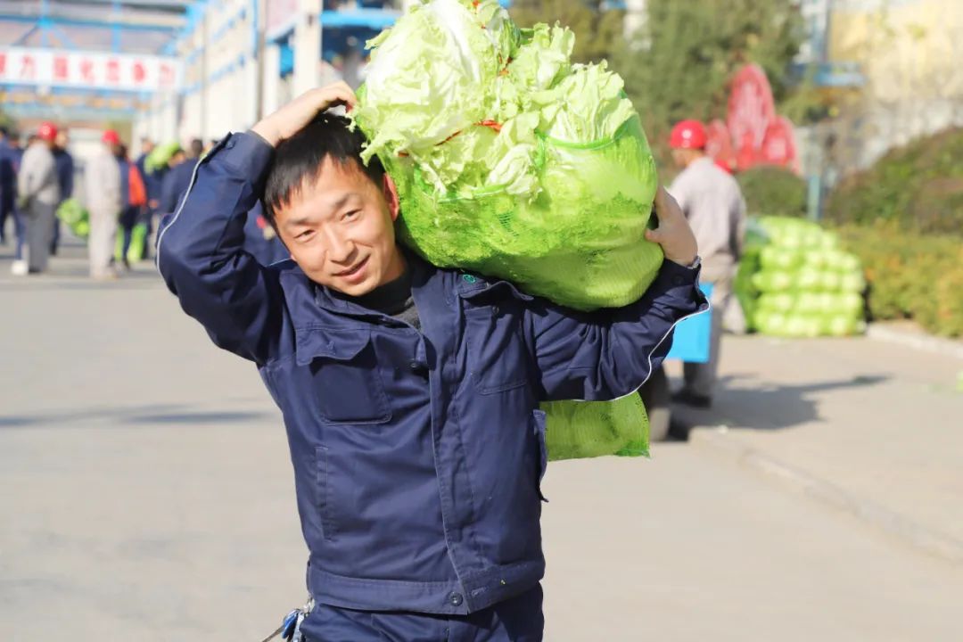 在发放现场,随处可见你来我往、手捧肩扛的情景,洋溢着一片温馨和谐的氛围,沉甸甸的福利品捧在手里,暖在心里,更加坚定了大家立足本职岗位,创造更好业绩的信心和决心。员工们纷纷表示:“冬天家里放些大白菜,就觉得心里踏实,可以炒着吃、蒸包子、做饺子都不错呢。”