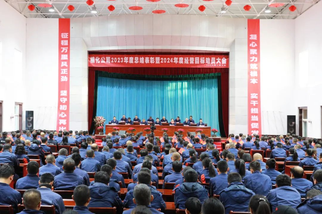 最后,董事长杨柳青发表了重要讲话。他对公司2023年各项工作取得的成绩表示肯定,向艰苦奋斗、守责奉献的全体干职员工表达了诚挚的感谢。过去的一年里,面对严峻的外部经营环境,全体干职员工坚定信心,迎难而上,脚踏实地,守职尽责,积极推动基础工作改革提质,坚定不移完成了公司的一系列重大任务、重要举措,牢牢守住了生产经营的基本盘,筑牢了安全、技术、管理、人才四个发展支撑,迈出了向医药健康产业转型的探索步伐,打通了公司高质量发展的“中梗阻”,为双百榆化搭桥铺路。