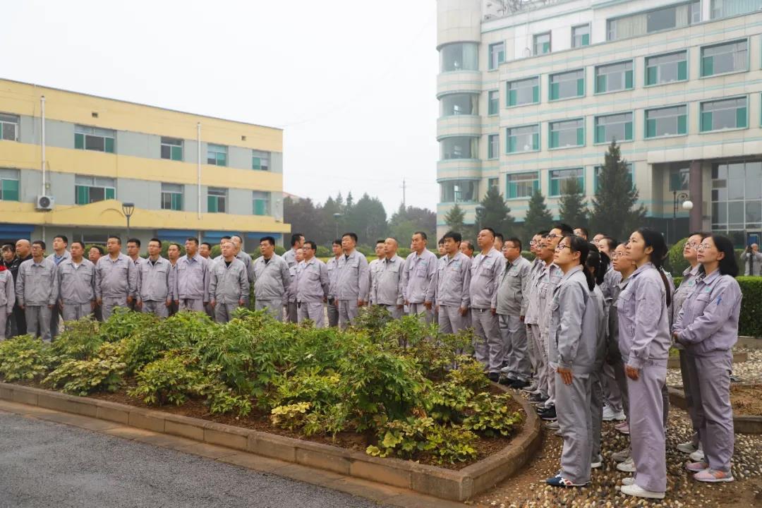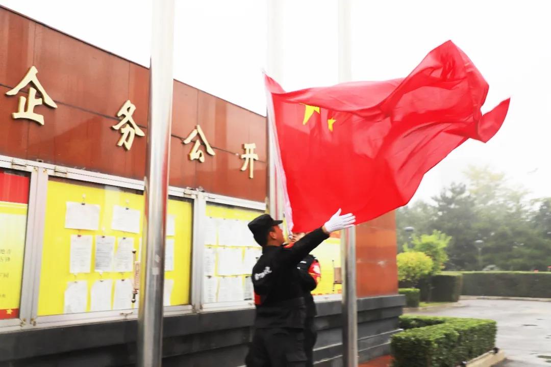 秋风舞国 旗,晨曦庆华诞。为进一步激发公司干职员工的爱国主义热情,今天上午,公司举行庄严的升国 旗仪式,庆祝中华人民共和国成立71周年,祝福伟大祖国繁荣昌盛。公司党委书记、董事长刘俊及60余名干职员工代表来到公司楼前,面向升旗台列队整齐,精神饱满。