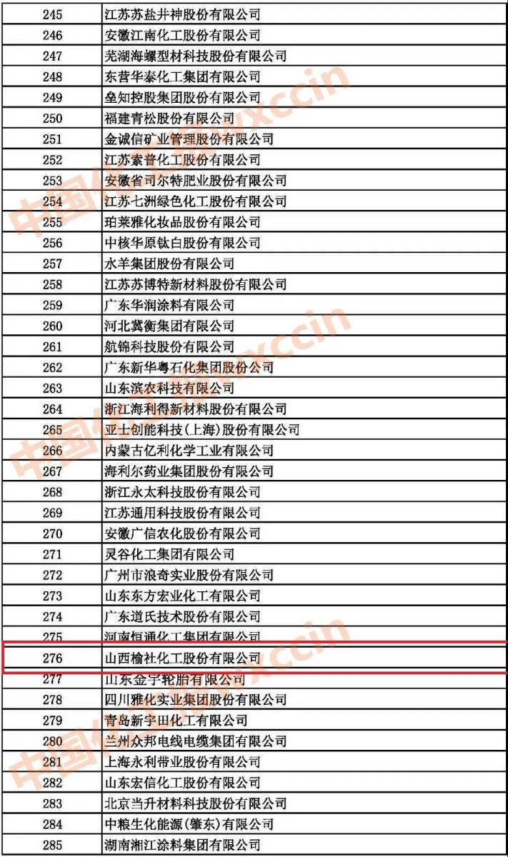 自2003年至今,公司已连续19年登上中国化工企业500强榜单。今年,我公司荣登2021中国石油和化工企业500强排行榜(综合类企业)第276名!
