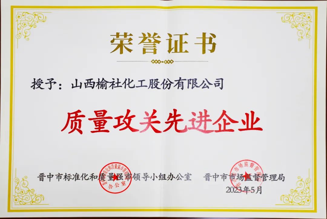 近日,晋中市2022年度质量攻关活动优秀成果名单揭晓,公司“改善氯乙酸产品的颜色问题”质量攻关项目荣获晋中市质量攻关优秀成果奖一等奖优异成绩,公司被授予“质量攻关先进企业”荣誉称号。自2018年开展质量攻关以来,公司申报项目已连续四年斩获一等奖的佳绩,项目的实施取得了显著成效,有力地推动了产品质量的不断提升。