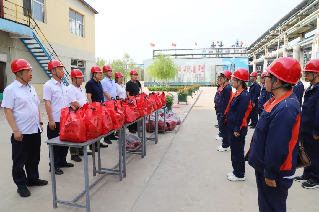 炎炎盛夏,暑气灼人。7月19日,县委常委、副县长贾永胜,县人大常委会副主任、县总工会主席张耀元,县总工会党组书记、常务副主席孟利飞一行领导深入我公司生产一线高温岗位开展“情系职工 清凉一夏”走访慰问活动。公司常务副总经理刘洋,工会主席刘宇光陪同。