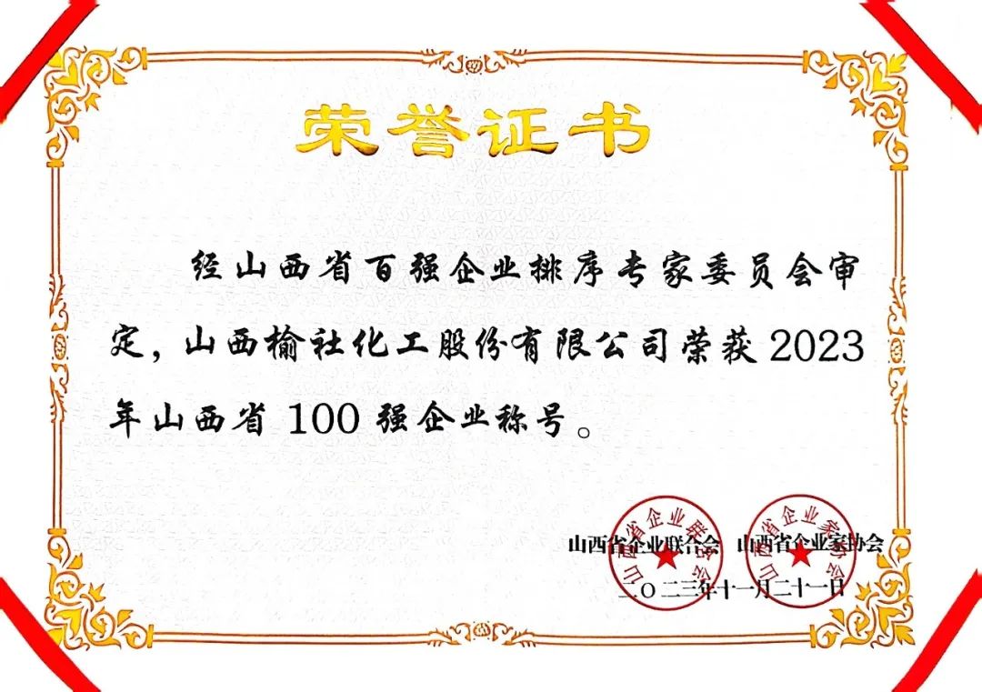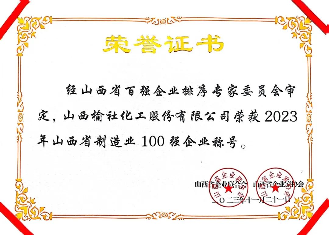 11月21日,山西省企业联合会、山西省企业家协会在太原组织召开了2023山西100强企业高峰论坛,论坛发布了2023山西企业100强、制造业企业100强、服务业企业100强等排行榜,同时发布《山西企业100强(年度)发展报告》。公司荣列2023年山西省100强企业第79位,2023年山西省制造业100强企业第60位。