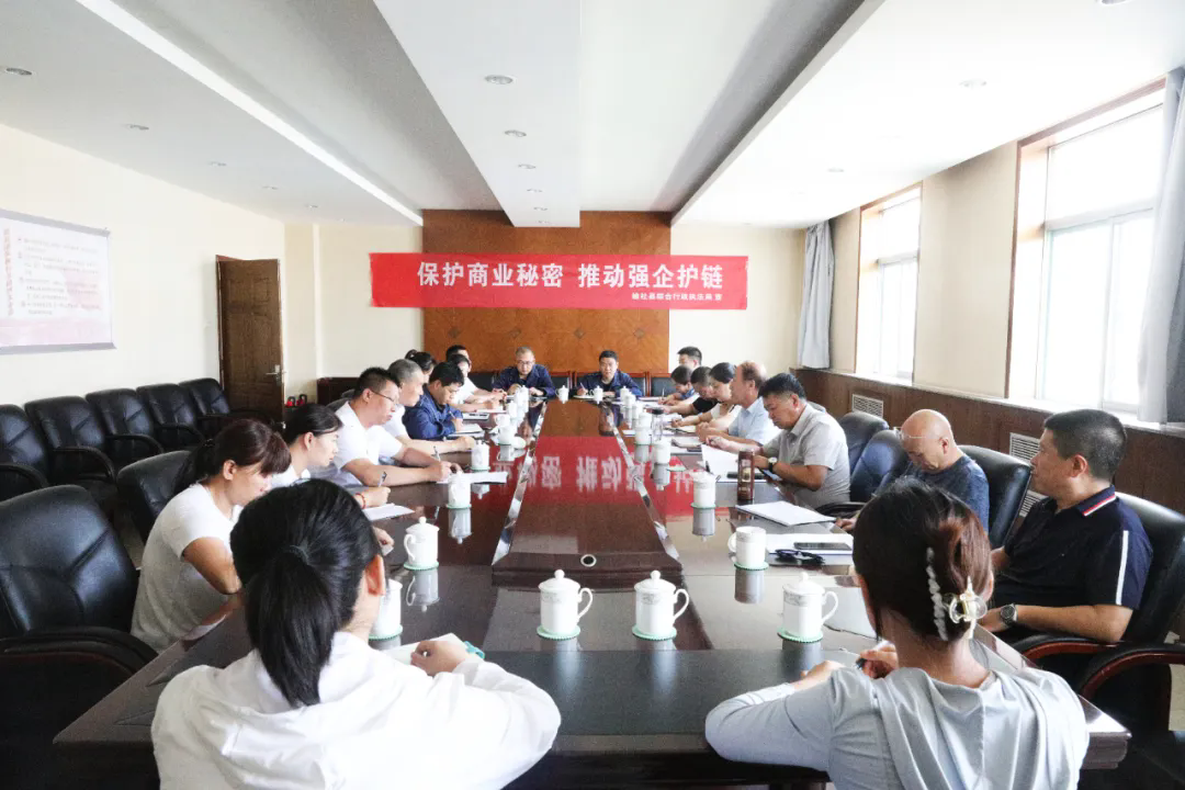 梁栓怀详细询问企业商业秘密保护工作现有措施和开展情况,深入分析了保密工作面临的形势,认真讲解了商业秘密保护范围等相关知识,针对企业特性给予建议和指导,进一步提升企业商业秘密保护意识和水平。