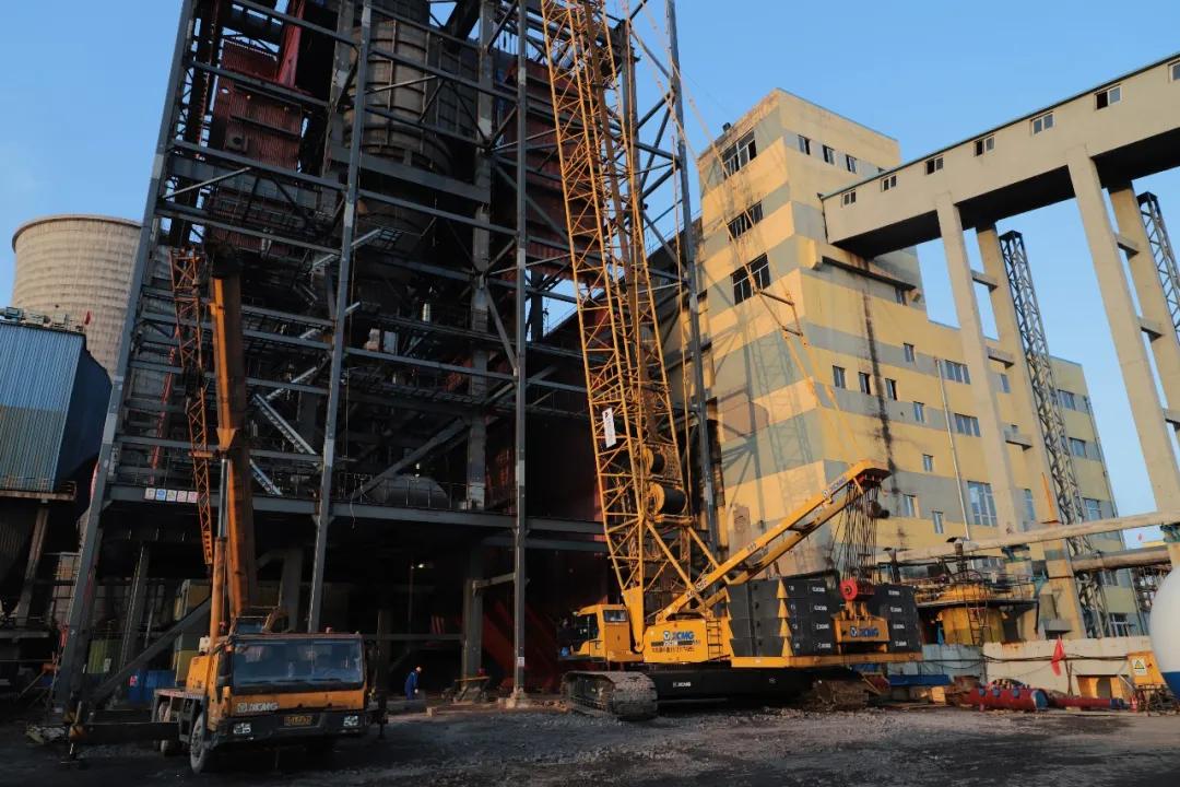 锅炉内外钢架,顶板及运转层梁格已安装完成。