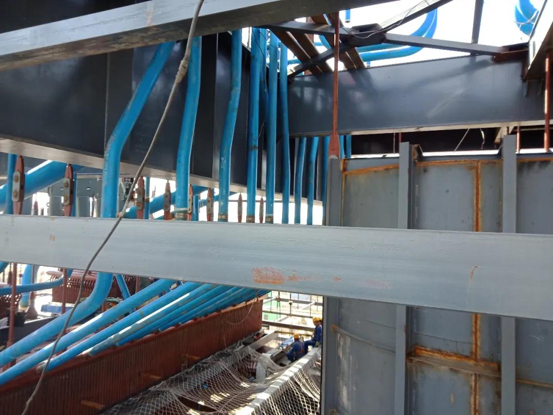 两台旋风分离器内壁抓钉已焊接完成。