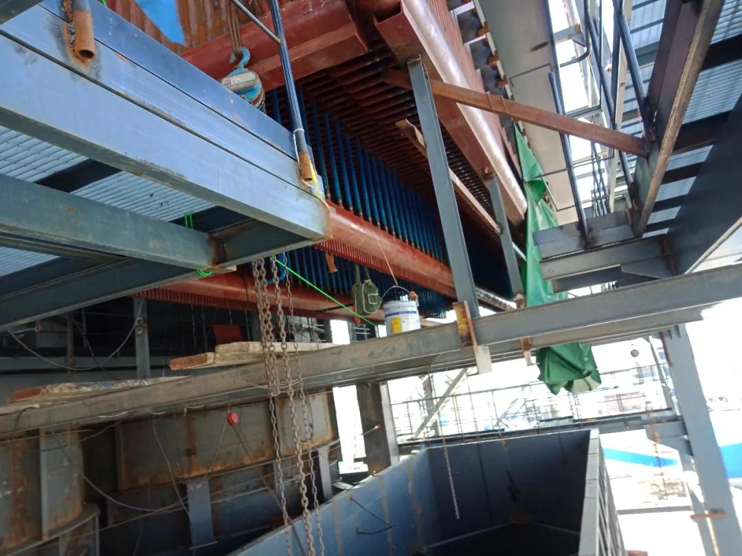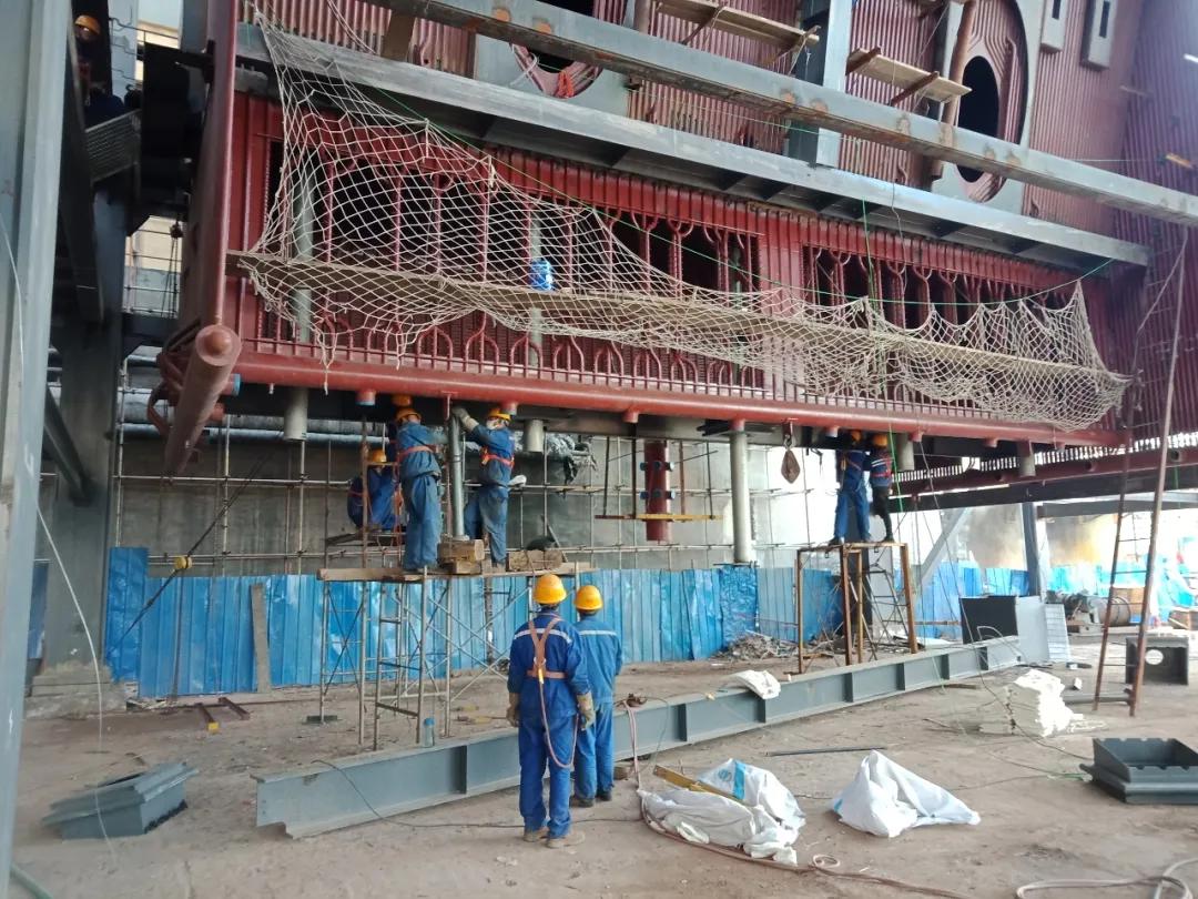 下降管已焊接完成,正在组对落渣管。