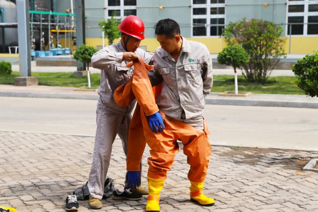 众所周知,作为化工企业,员工的安全处置和应急能力显得尤为重要。为加强生产一线干部员工应急处置能力,免于在事故状态下因不会使用或对防护用品使用不当,影响应急处置或造成人员伤害。6月11日-12日,公司组委会开展了从“火灾报警使用——轻型防化服和空气呼吸器佩戴——消防设施使用”的实操评比。